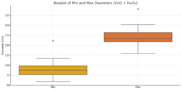 Figure S6. Boxplot of minimum and maximum diameters of $\mathrm{ZnO}-\mathrm{Fe}_2 \mathrm{O}_3$ nanocomposites