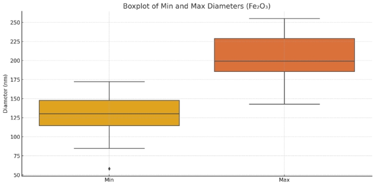 Figure S4. Boxplot of minimum and maximum diameters of $\mathrm{Fe}_2 \mathrm{O}_3$ nanoparticles