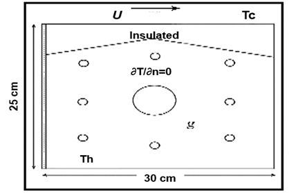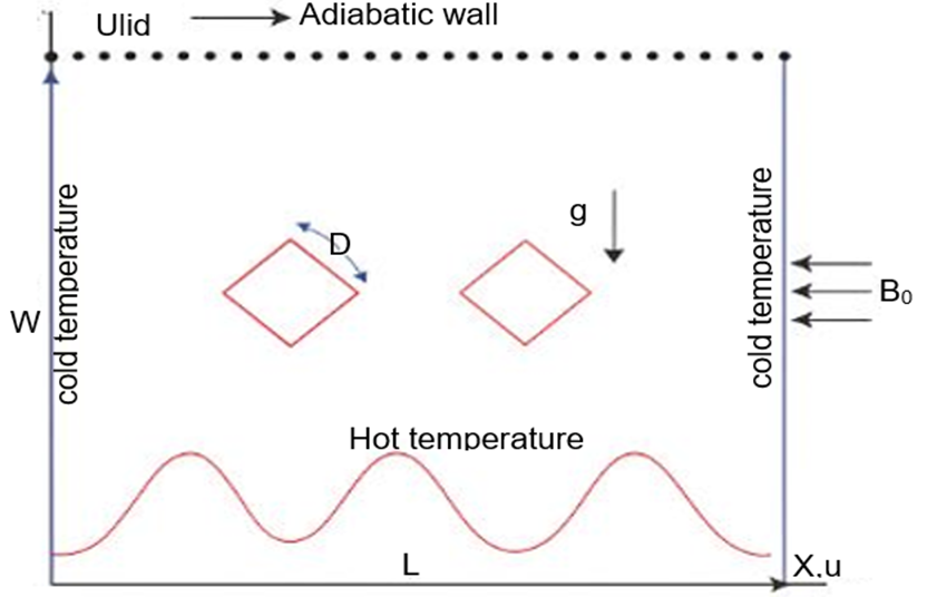 The importance of obstacles inside cavities emerged with the emergence of the importance of heat convection and its consideration as a promising, clean and economical technique that can be exploited in electronic cooling and heat dissipation in various current industries [2]. In recent research, Rashid et al. [3] used a wavy channel to in enhance the HTR. Hashim et al. [4] studied HT through a wavy wall. Nasir et al. [5] examined inspected irreversibility phenomenon produced by thermal exchange in nano liquid flow past a radially flexible disk. Sadeghi et al. [6] investigated the effect of fins on HT performance.