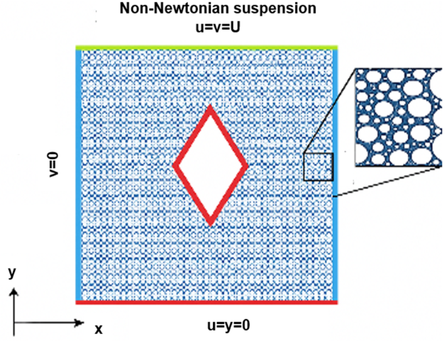 [54] | Ali et al. | FEM | Casson fluid | $Re=1$–$500$; $\beta=0.1$–$5$; $0\leq Ha \leq 100$; $Pr=20$ | Square cavity with a central circular solid obstacle and double moving lids. | ![]() |